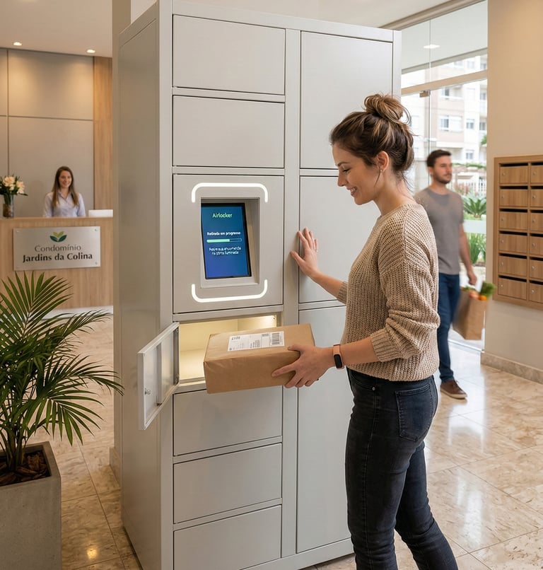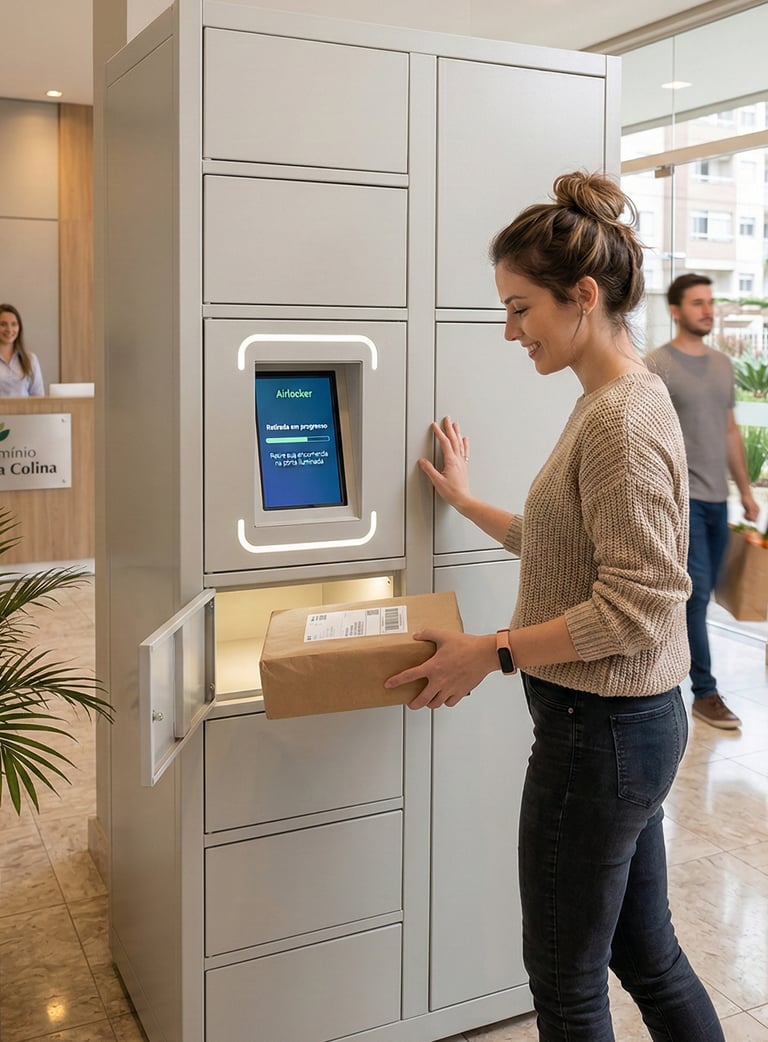 O Airlocker traz para o seu espaço uma solução eficiente para gerenciar entregas, eliminando congestionamentos na recepção e garantindo que cada pacote chegue ao seu destino corretamente.
